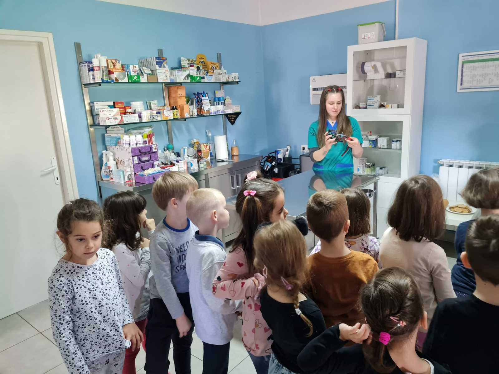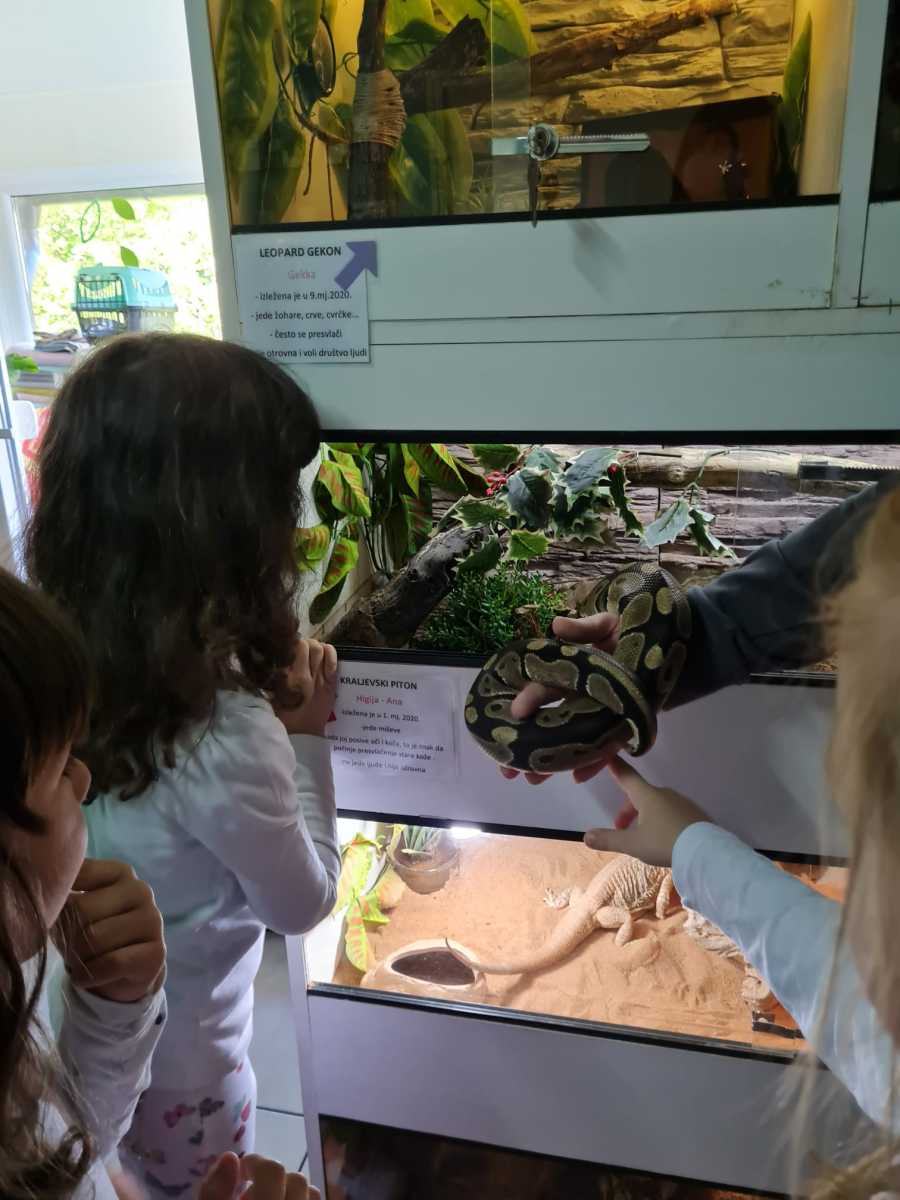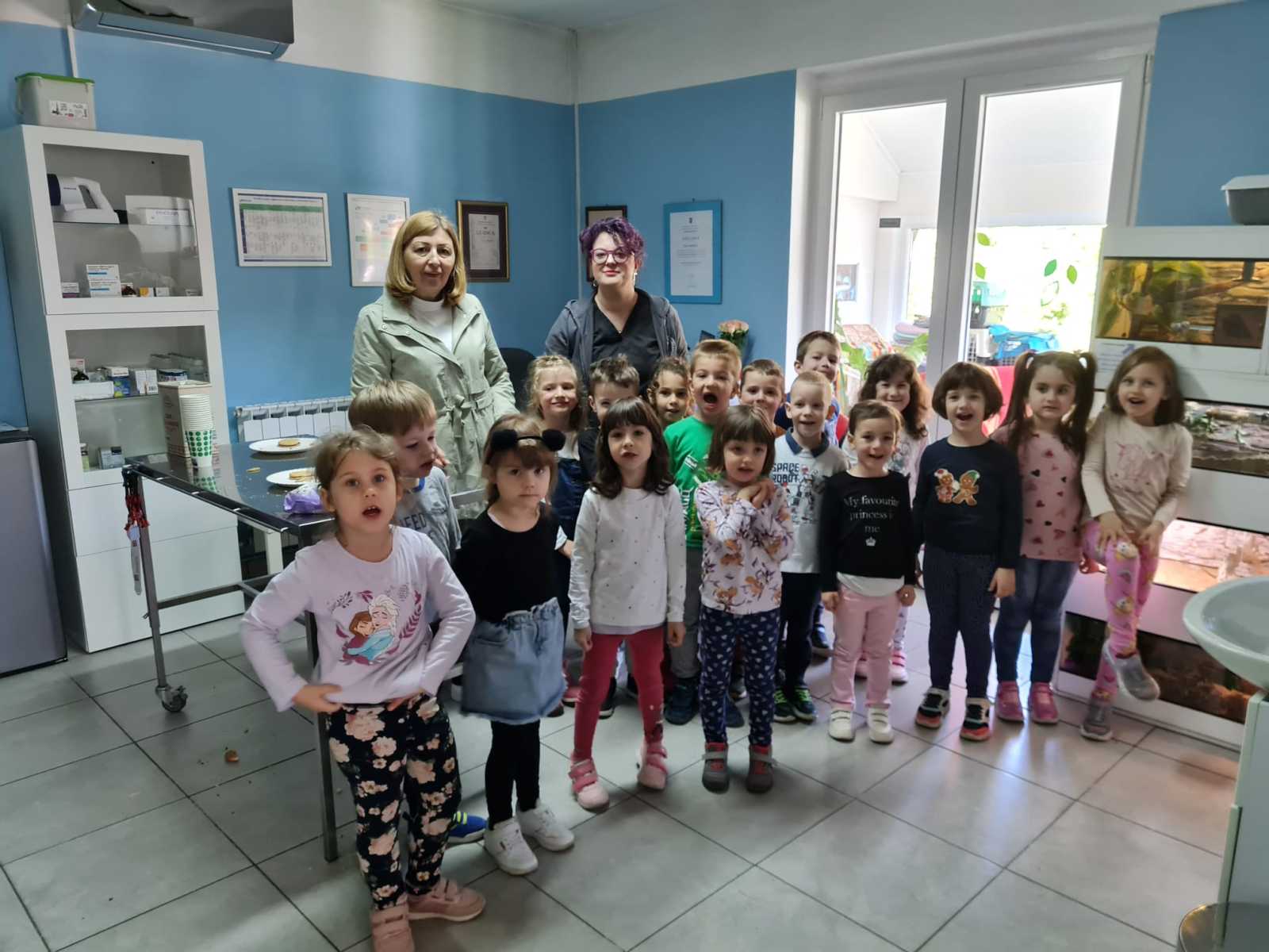 U sklopu projekta “Kućni ljubimci” djeca skupine Cvjetići 26.4.2024. zajedno sa svojim odgojiteljima Tatjanom S. Pintar i Enom Sabljak posjetila su veterinarsku kliniku “PetVet”. Nakon srdačnog i toplog dočeka uz kratko upoznavanje Cvjetići su imali priliku vidjeti prostor u kojem se liječe i uređuju kućni ljubimci, upoznati životinje iz terarija – kornjaču, žabu, puža i kraljevskog pitona te naučiti kako brinuti o kućnim ljubimcima. Nakon čašćenja i poklona koje je za djecu pripremila ljubazna vlasnica gđa. Petra Mihelčić, a kojoj se ovim putem zahvaljujemo na gostoprimstvu i zanimljivom posjetu, puni dojmova vratili su se u vrtić gdje svakodnevno kroz simboličku igru ” Veterinar” prerađuju doživljena iskustva.