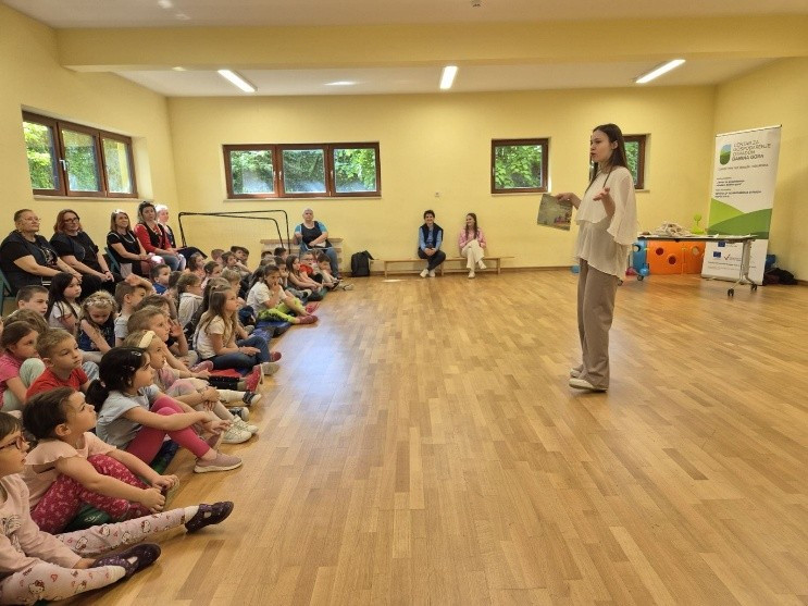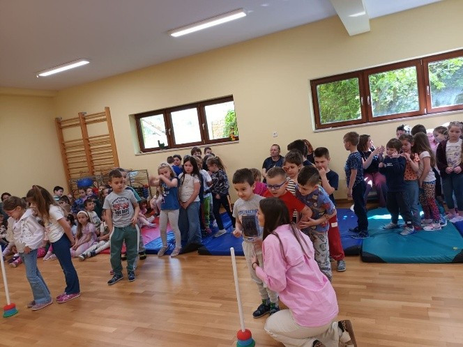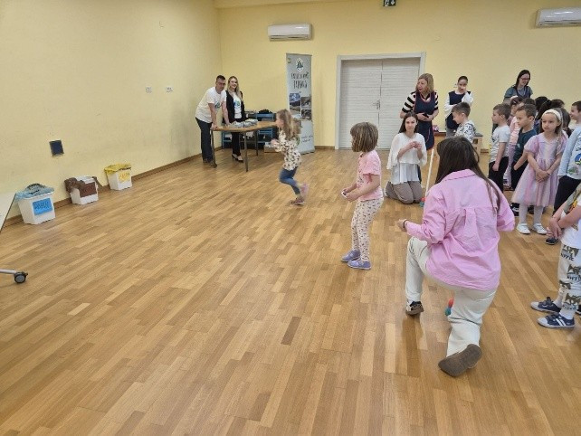 Dana 30. travnja u područnom objektu našeg vrtića održala se radionica za predškolske grupe pod nazivom ,,Zaštita okoliša i razvrstavanje otpada“. Djeca su slušala zanimljivu priču ,,Za naš planet čist i zdrav“ o razvrstavanju otpada. Nakon pročitane priče, razgovarali su o brojnim mogućnostima očuvanja našeg planeta Zemlje i recikliranju. Zatim je slijedila zabavna igra štafete u kojoj su djeca izabrala različite sličice otpada te su za zadatak imali što brže točno razvrstati otpad u predviđene spremnike. Uživali su u natjecanju, a kao nagradu svi su osvojili edukativnu slikovnicu i bojanku.
