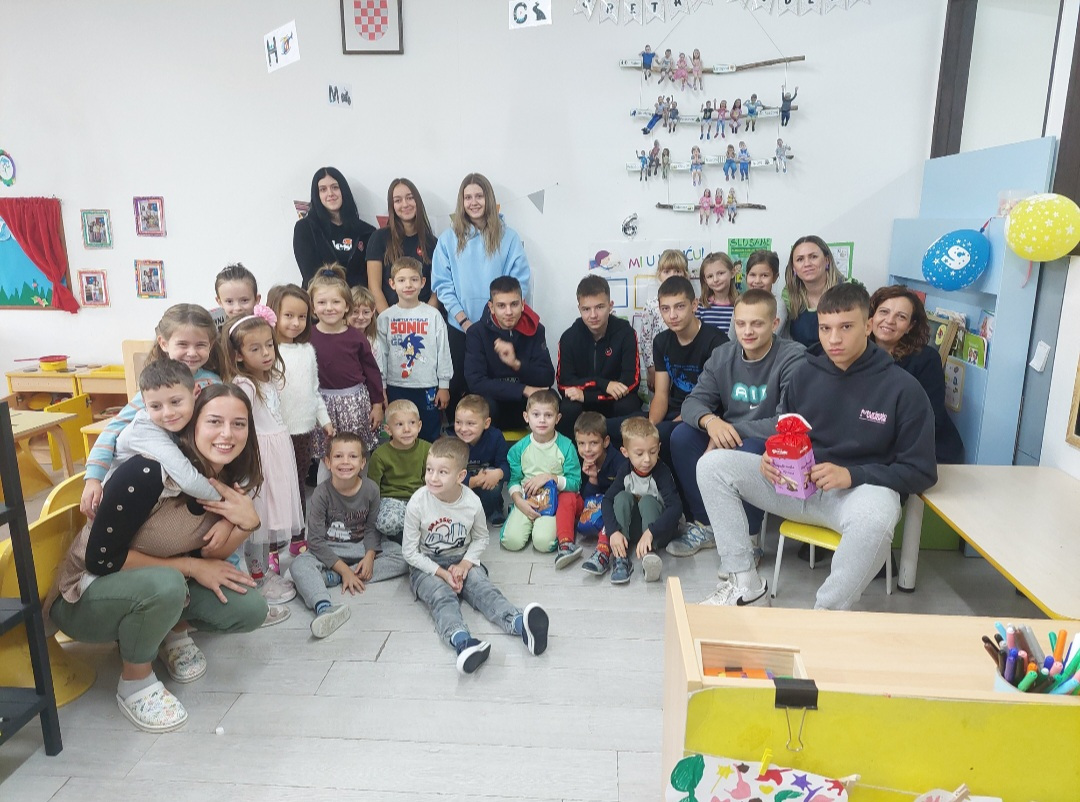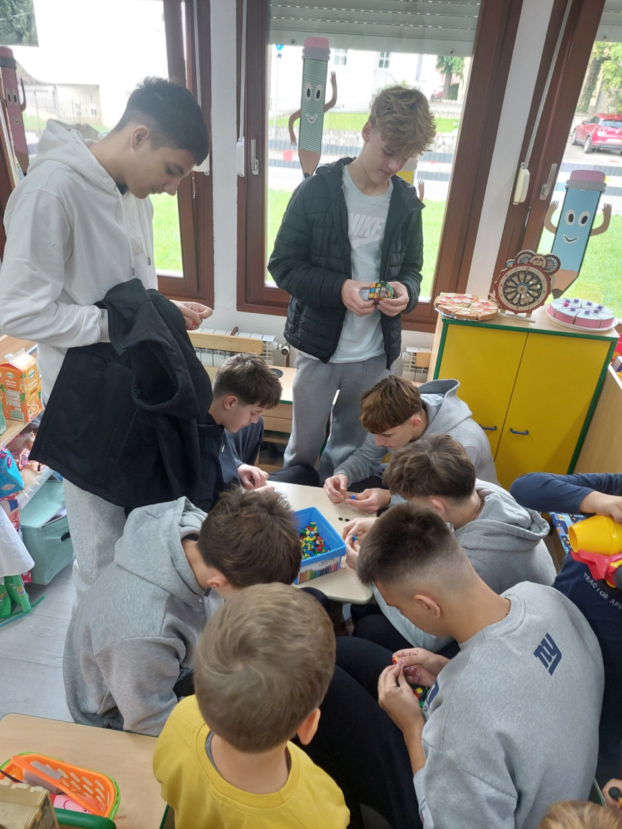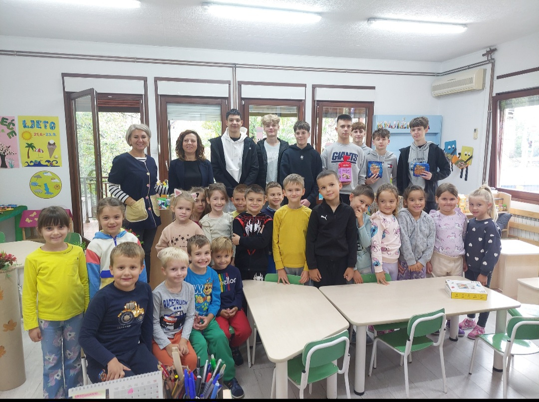 Učenici Obrtničke i tehničke škole Ogulin i njihove nastavnice Vesna Žilić i Sanja Musulin posjetili su naš vrtić povodom 140. obljetnice strukovnog obrazovanja u Ogulinu i rođendana njihove škole. S nama su podijelili brojne anegdote iz školskih klupa, prisjetili se svojih dana u vrtiću, ali i isprobali razne igračke. Vrtićance su razveselili grickalicama koje su im donijeli na poklon. Hvala im na dolasku i donaciji! Veselimo se budućoj suradnji.
