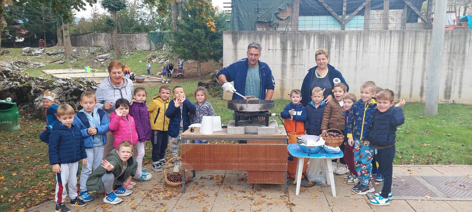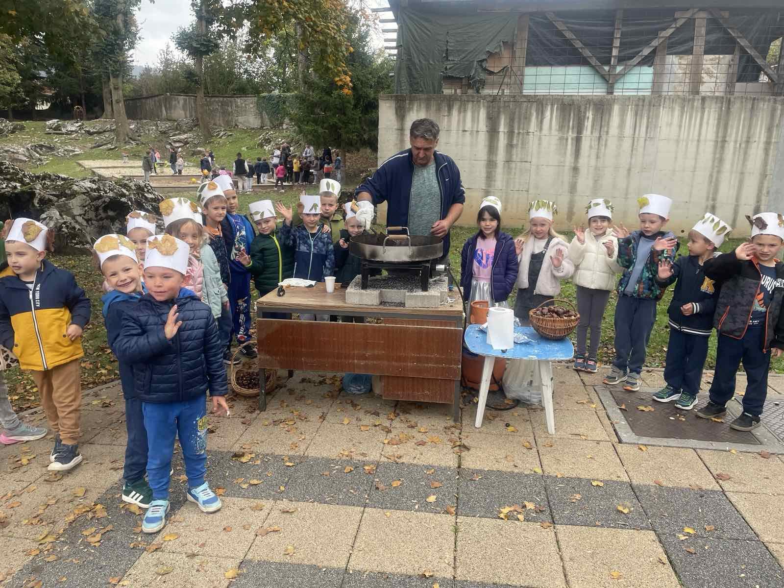 U našem vrtiću miris jeseni ispunio je dvorište! Uz pjesmu, smijeh i tople kestene proslavili smo Kestenijadu – veselu jesensku tradiciju. Djeca su istraživala jesenske plodove, promatrala kako se kesteni peku i s oduševljenjem ih kušala. Uz igre, pjesme i zajedničko druženje, naučili smo kako se priroda mijenja i koliko nam darova donosi svako godišnje doba. Dan smo završili uz poruku – jesen je ljepša kad se dijeli s drugima!
