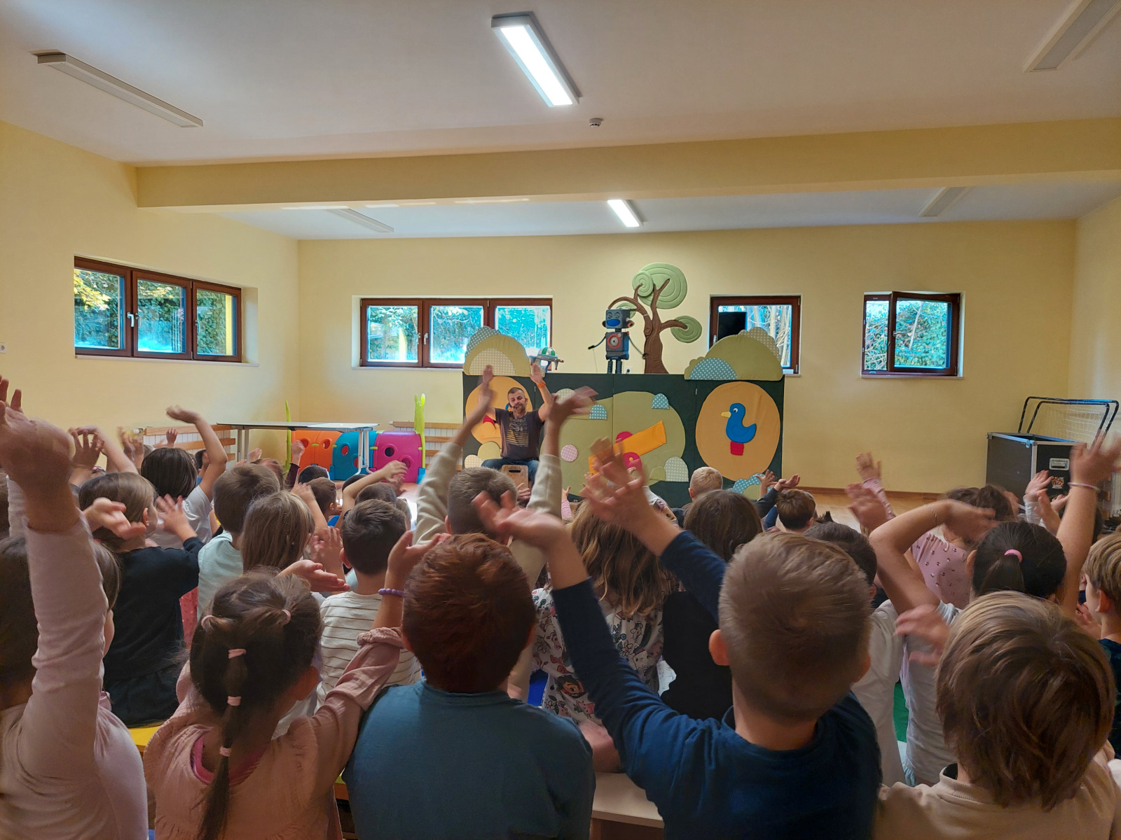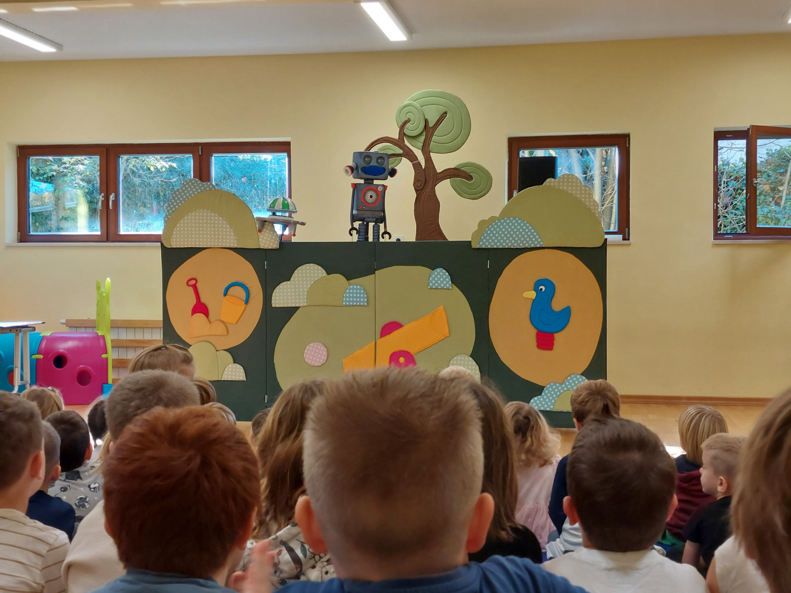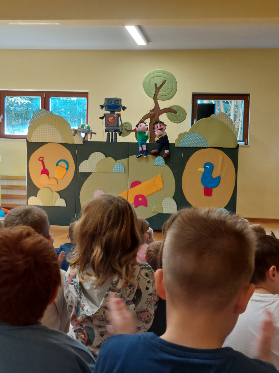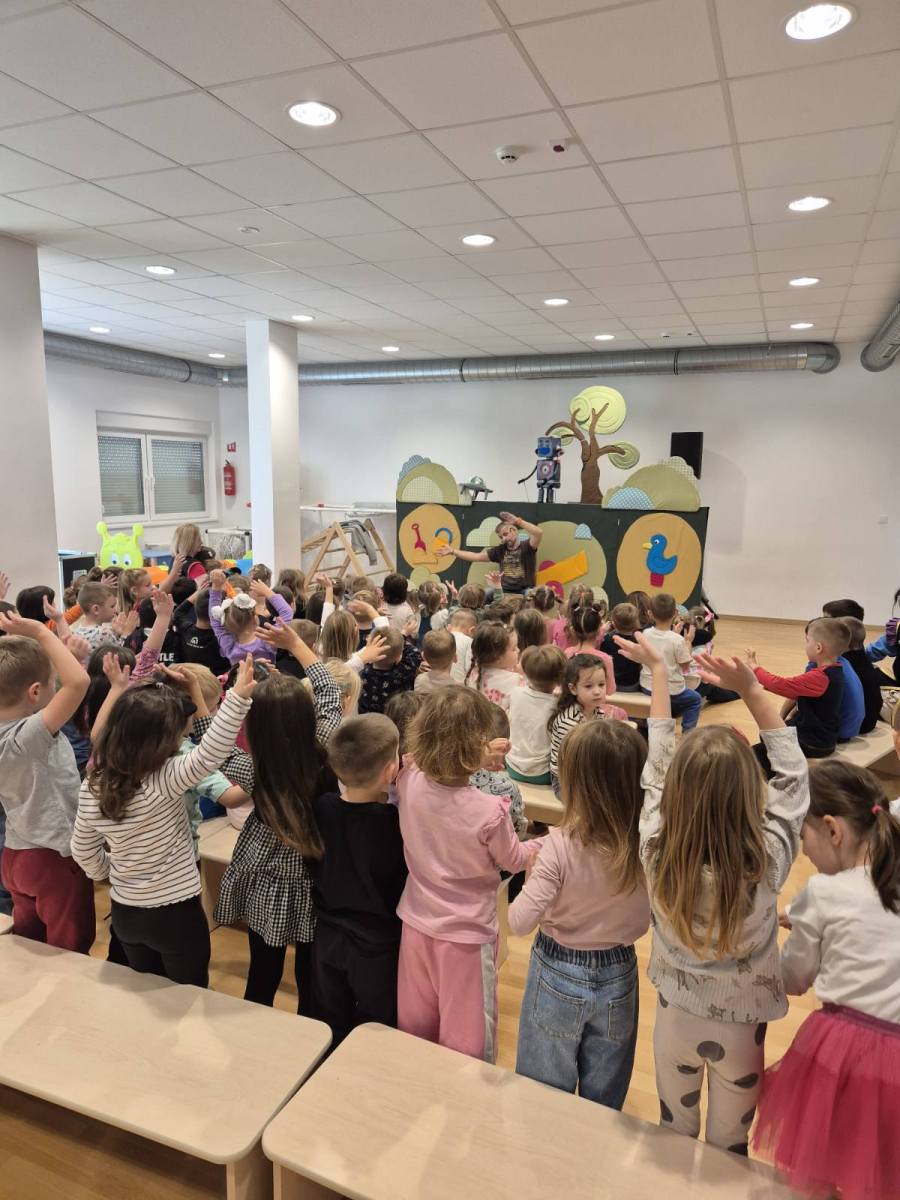 U našem vrtiću gostovalo je kazalište Produkcija Z s predstavom Robot Roko i zlatno srce. Priča je to o robotu Roku koji je bio prisiljen sletjeti na Zemlju zbog kvara na letećem tanjuru. Dječak Josip i njegov tata Miško priskoče u pomoć robotu. Kada nastupi veliko nevrijeme, robot Roko spašava dječaka od stabla koje se rušilo na njega, a kasnije Josip i njegov tata pomažu robotu da i on dobije srce koje jako želi i zaslužuje. Poruka je jasna: Ne moraš biti čovjek da bi imao srce, dovoljno je biti dobar i pomagati drugima! Zbog toga su i naši vrtićanci naučili kako je važno činiti dobra djela.