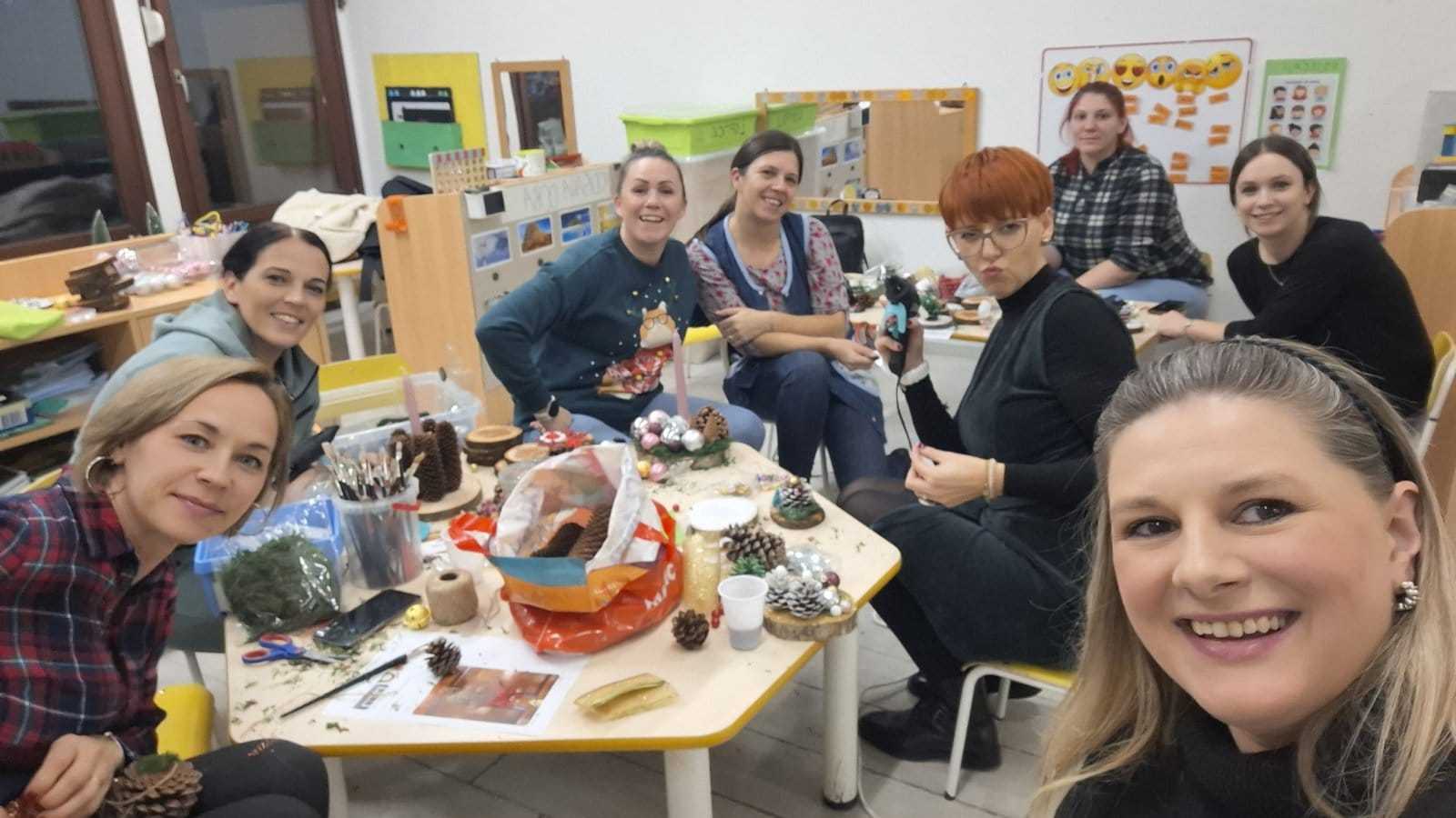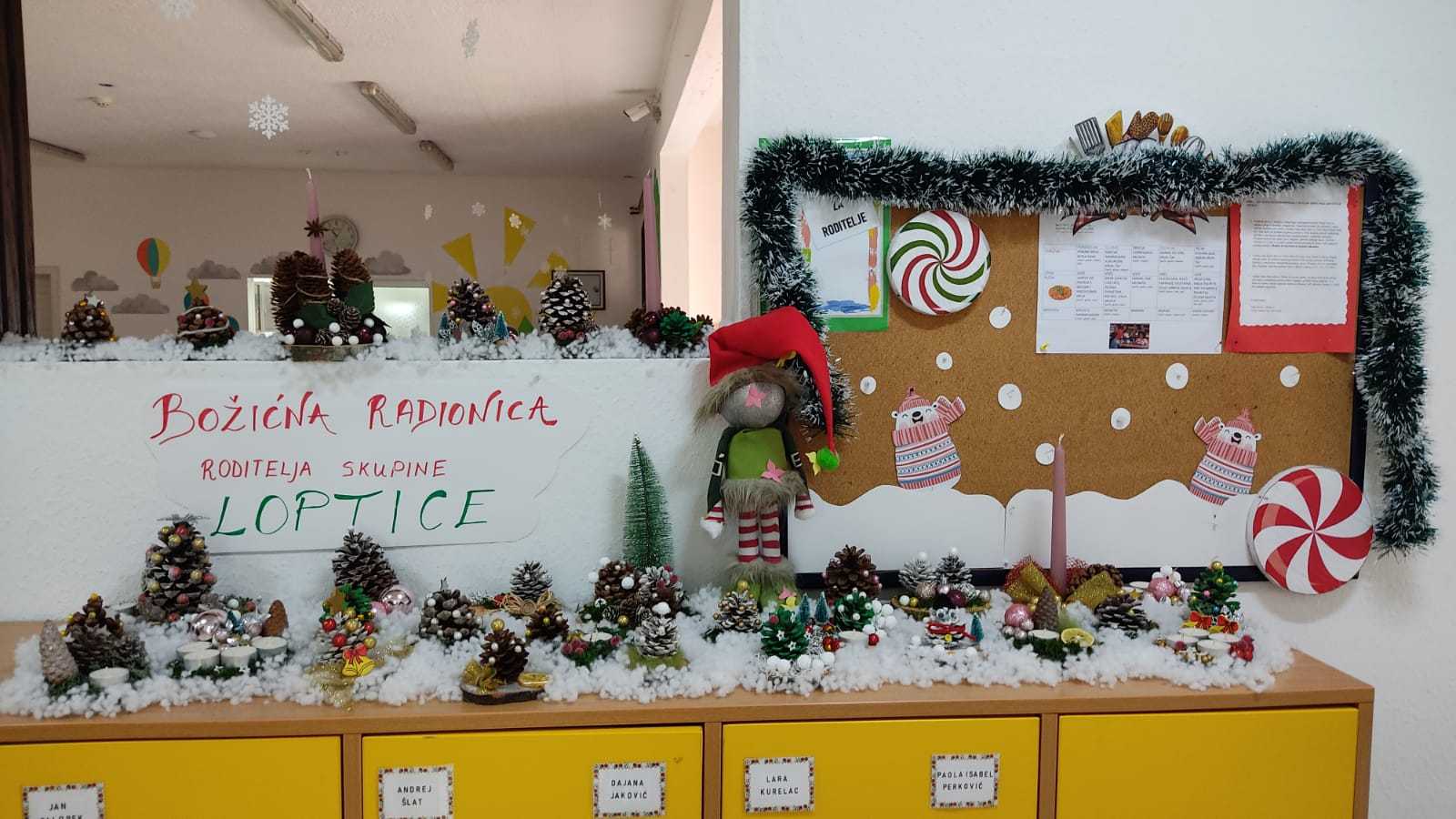 27.11.2025. u prostoriji odgojne skupine Loptice organizirana je božićna radionica za roditelje predvođena odgojiteljicama Marijom Pernar i Kristinom Kolić. Tema radionice bili su božićni ukrasi i adventski vijenci. Bila je to i prilika za veselo druženje roditelja i odgojitelja te jačanje suradnje između vrtića i obitelji. Uz kvalitetno druženje, roditelji i odgojitelji razmjenjivali su ideje, kreativne prijedloge i mnoge osmijehe. Izrađeni ukrasi i adventski vijenci mogu se pogledati ispred odgojne skupine kao izložba. S ponosom možemo reći da su nastali prekrasni, jedinstveni vijenci i ukrasi koje će djeca s radošću ponijeti kući stvarajući tako još ljepši ugođaj nadolazećeg adventa.