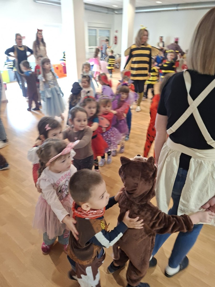 U našem vrtiću i ove je godine vladalo posebno veselje povodom održavanja povorke pod maskama. Skupine iz područnog vrtića prošetale su gradom, od vrtića do Trga hrvatskih rodoljuba, ponosno i radosno predstavljajući svoje maštovite i šarene kostime. Ulice su nakratko postale pozornica dječjeg smijeha, pjesme i razigranosti, a prolaznici su s osmijehom pozdravljali naše male maškare. Veselom glazbom i plesom svima su uljepšali dan.
