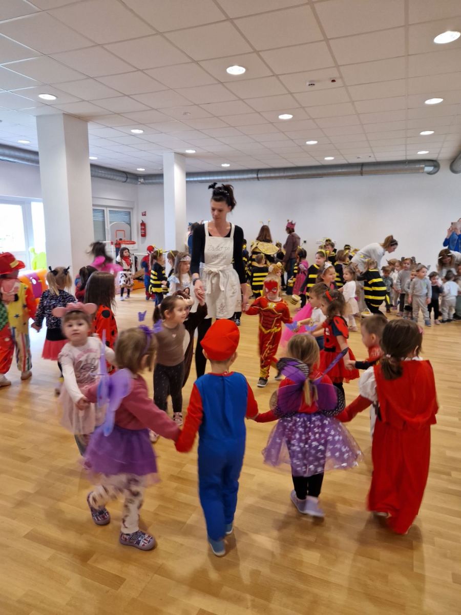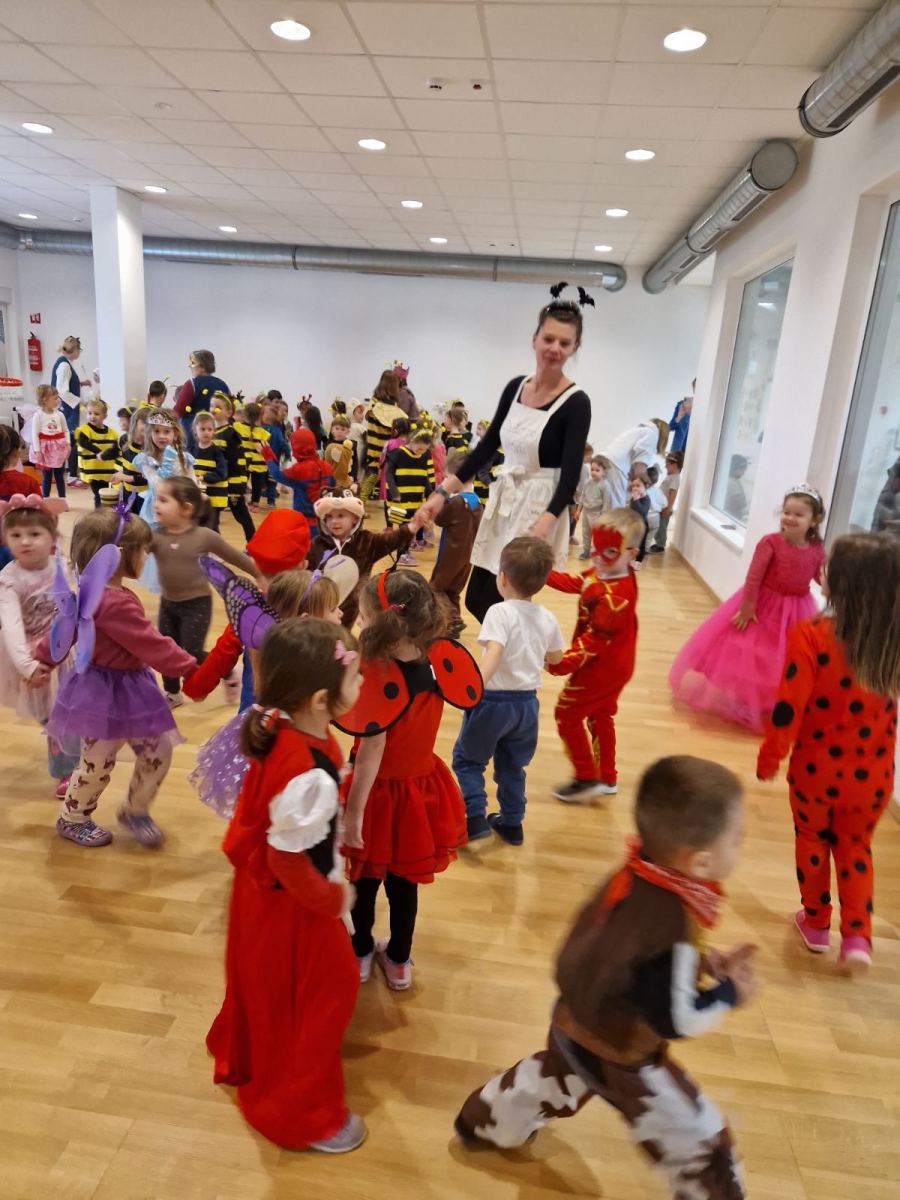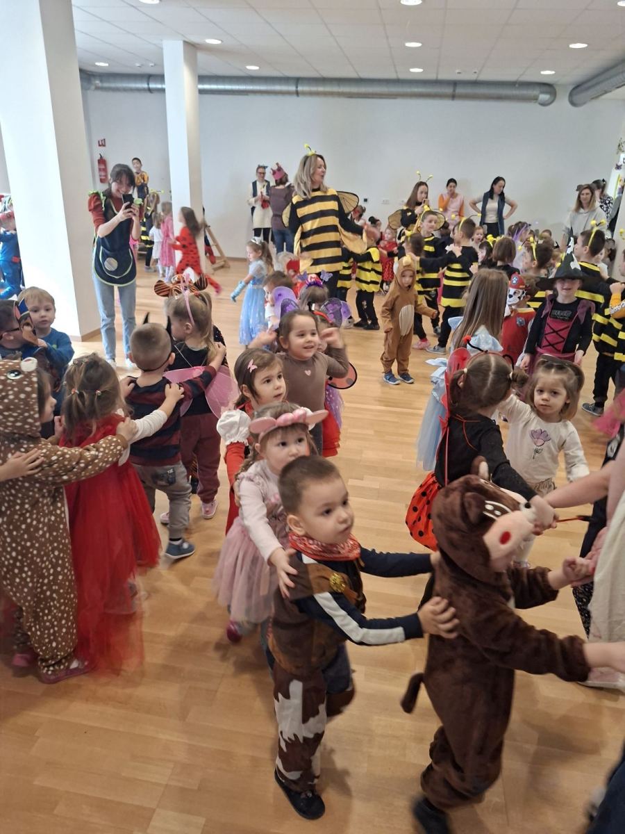 Istovremeno, u matičnom objektu vrtića održan je kostimirani ples u dvorani. Dvoranom su zavladali junaci iz bajki, životinje, superjunaci i razni drugi likovi, a ples, igra i zajedničko druženje ispunili su prostor radošću i šarenilom.