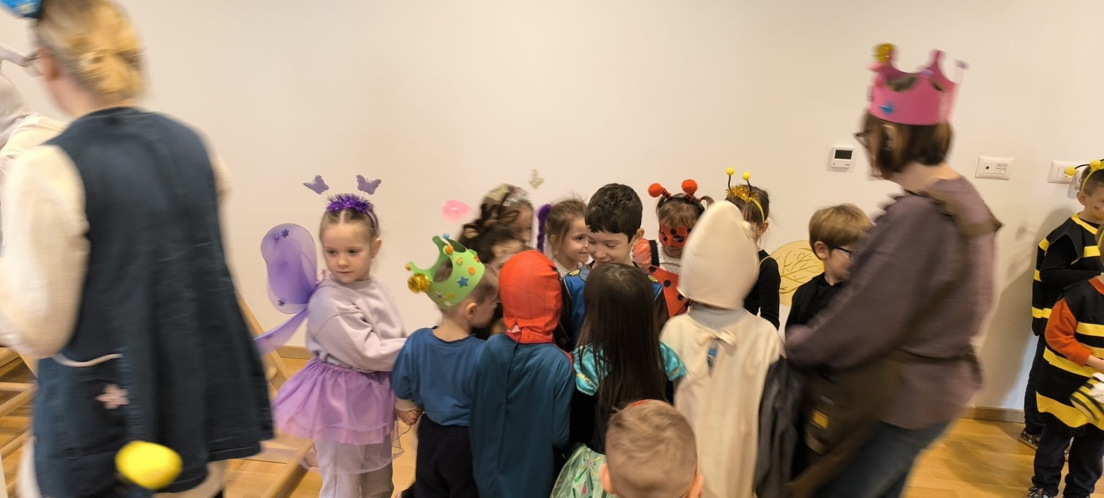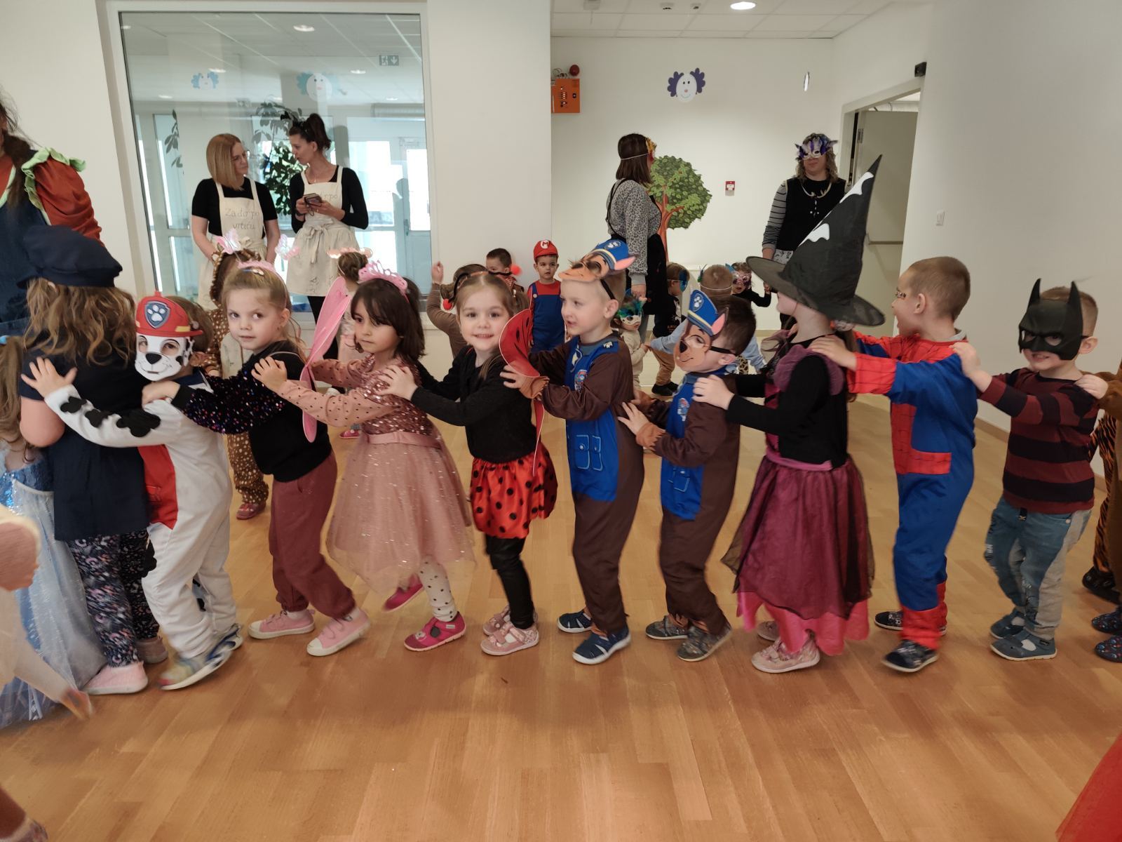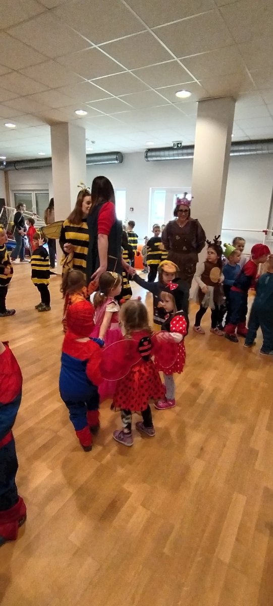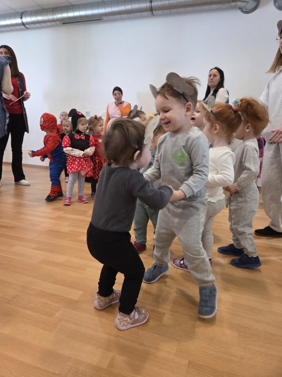 Istovremeno, u matičnom objektu vrtića održan je kostimirani ples u dvorani. Dvoranom su zavladali junaci iz bajki, životinje, superjunaci i razni drugi likovi, a ples, igra i zajedničko druženje ispunili su prostor radošću i šarenilom.