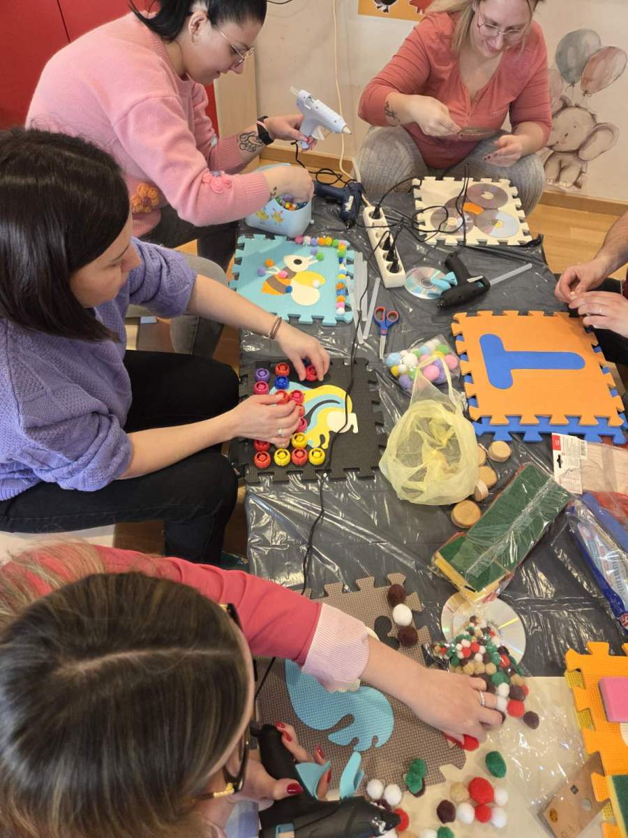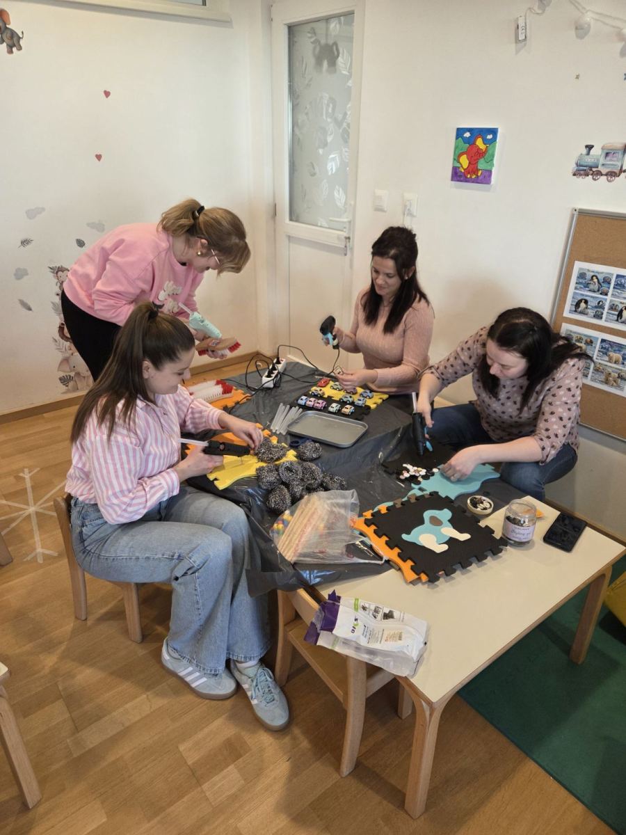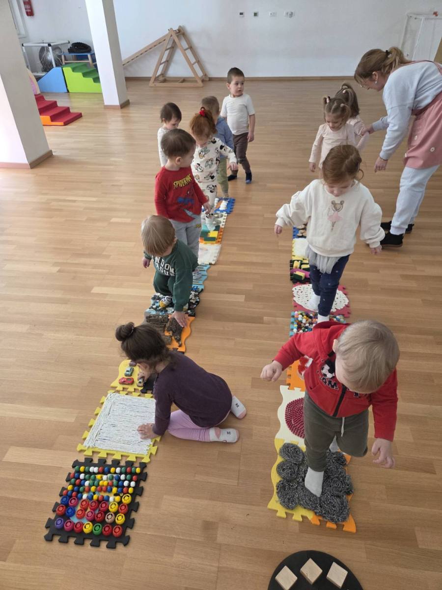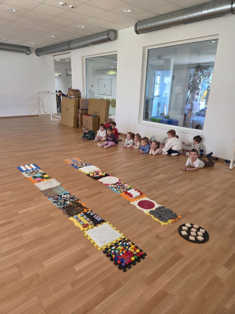 Odgojiteljice skupine Slonići zajedno s roditeljima održale su kreativnu radionicu izrade taktilnih ploča po kojima djeca mogu hodati. Roditelji su se odazvali u velikom broju i prikupili sav potreban materijal. U ugodnoj i poticajnoj atmosferi svi su uživali u procesu izrade, a djeca sada s veseljem hodaju po pločama, istražuju različite teksture i razvijaju svoja osjetila kroz igru.