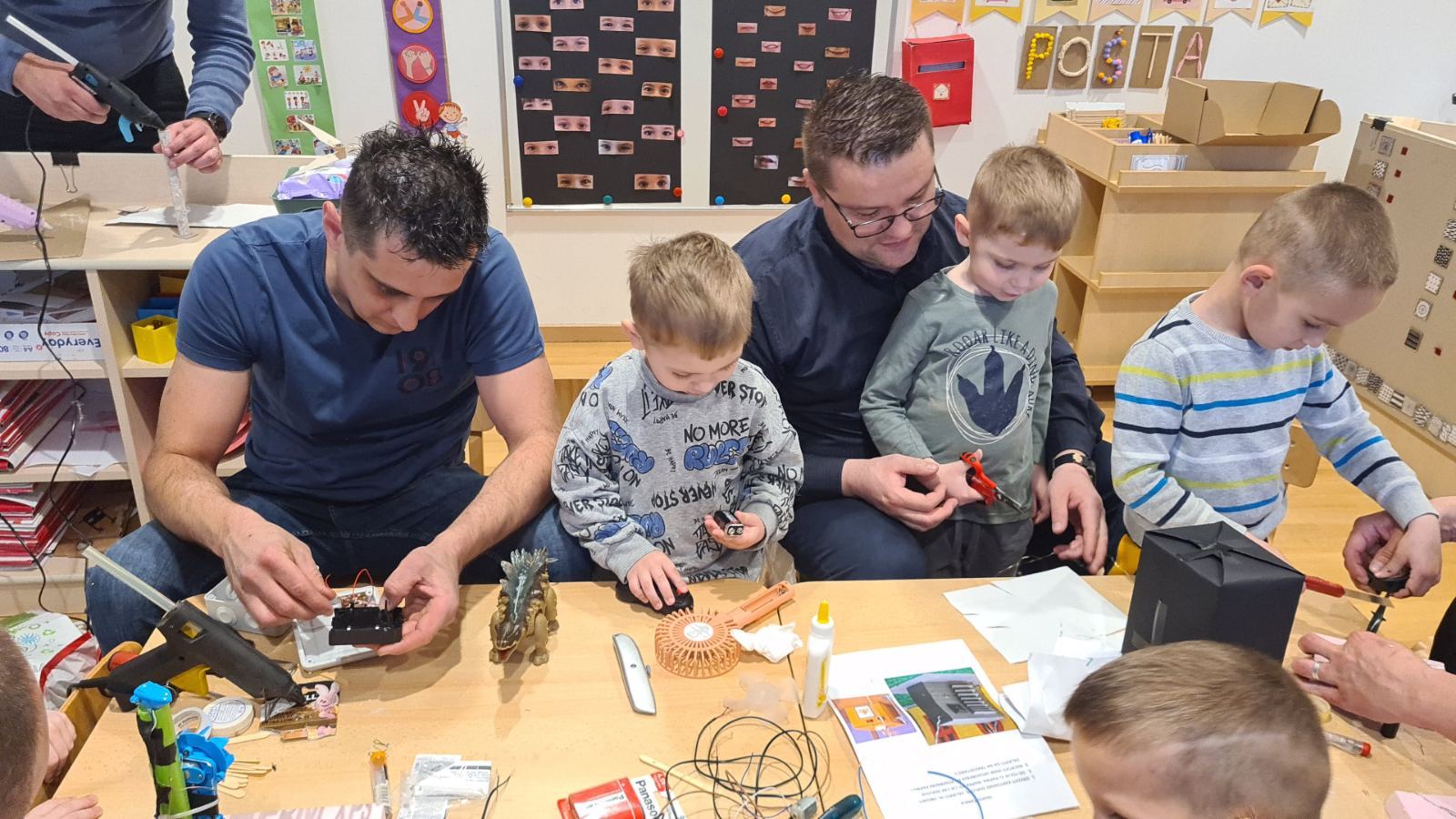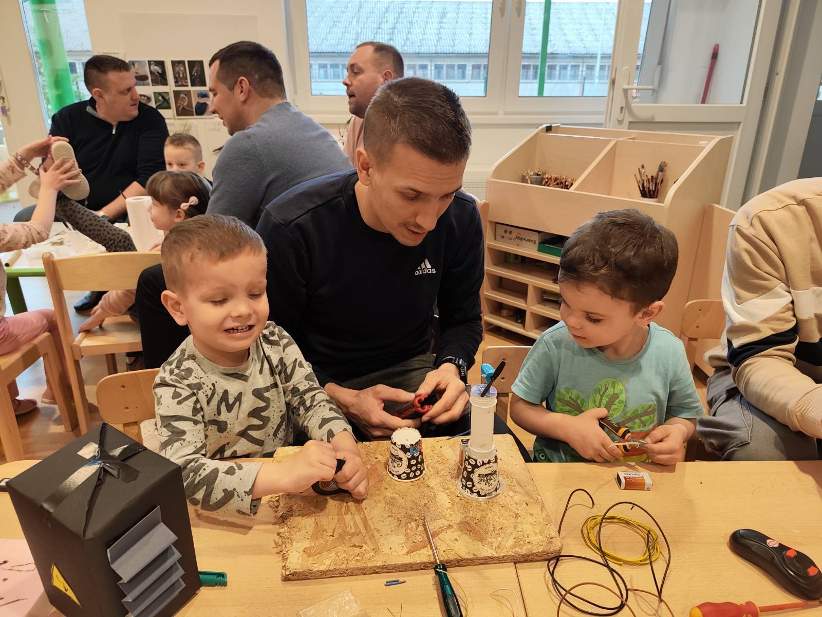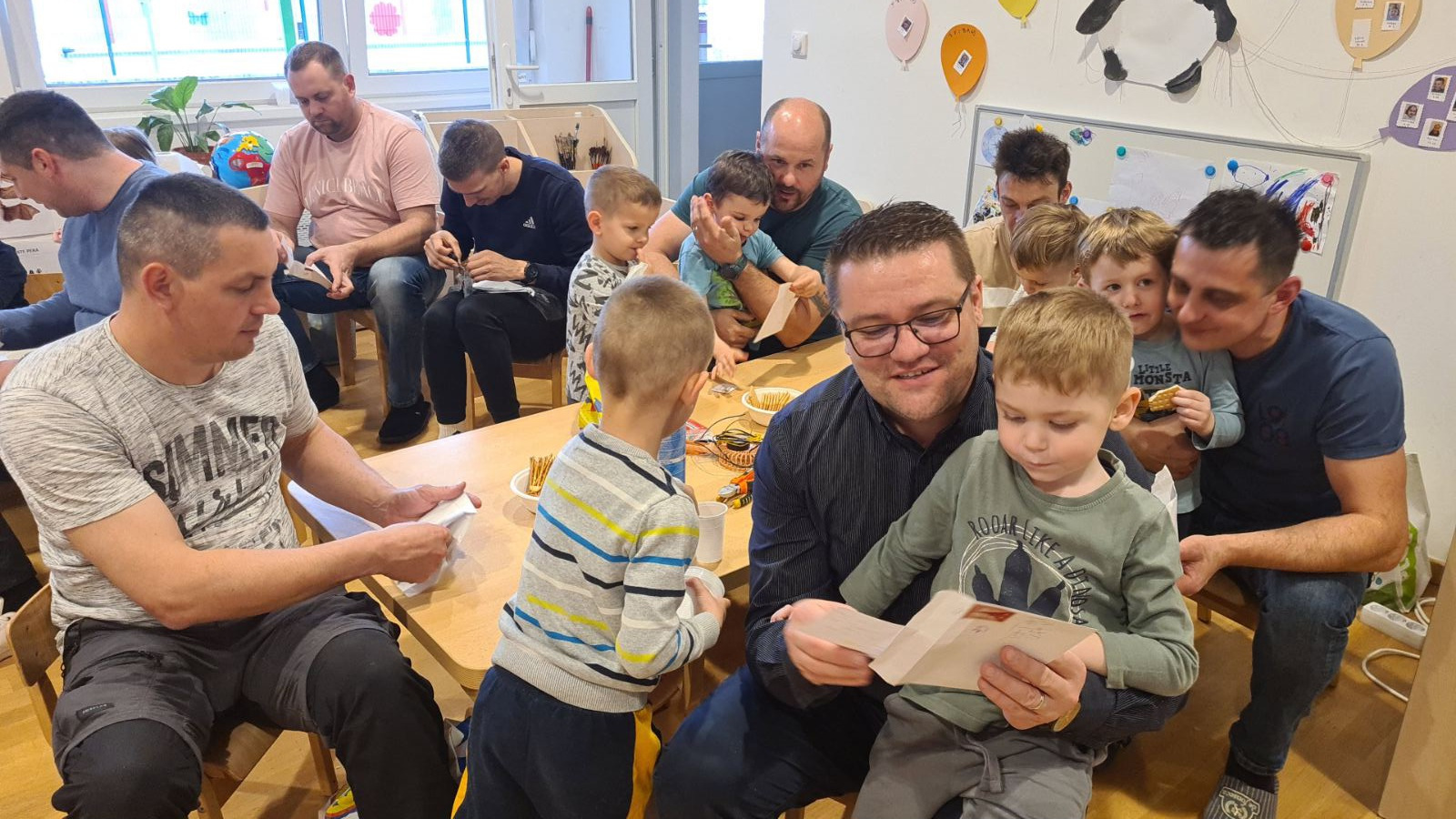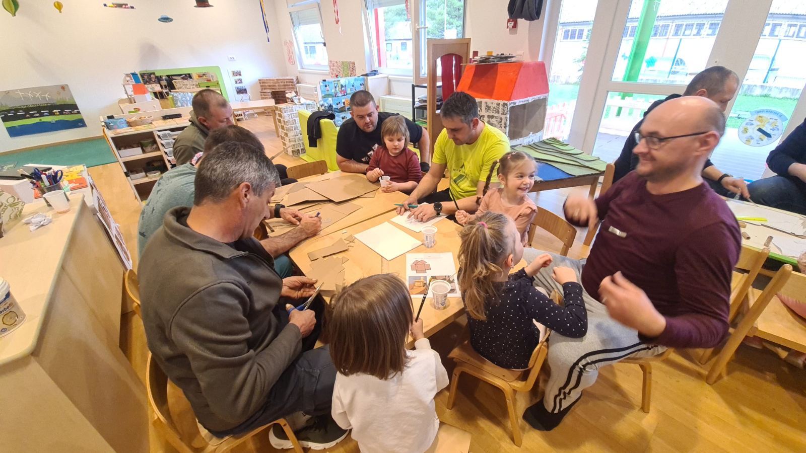 U srijedu 18. ožujka u skupini Pandice održana je kreativna radionica očeva i djece. Očevi su se uključili u zajedničku izradu vjetrenjača, trafostanice i brodića kako bi upotpunili izradu makete u sklopu projekta Energija vjetra. Zajednički rad bio je ispunjen smijehom, druženjem i ponosom na izrađene radove. Na kraju uspješne radionice djeca su očevima čestitala Dan očeva uz izrađene poklone.