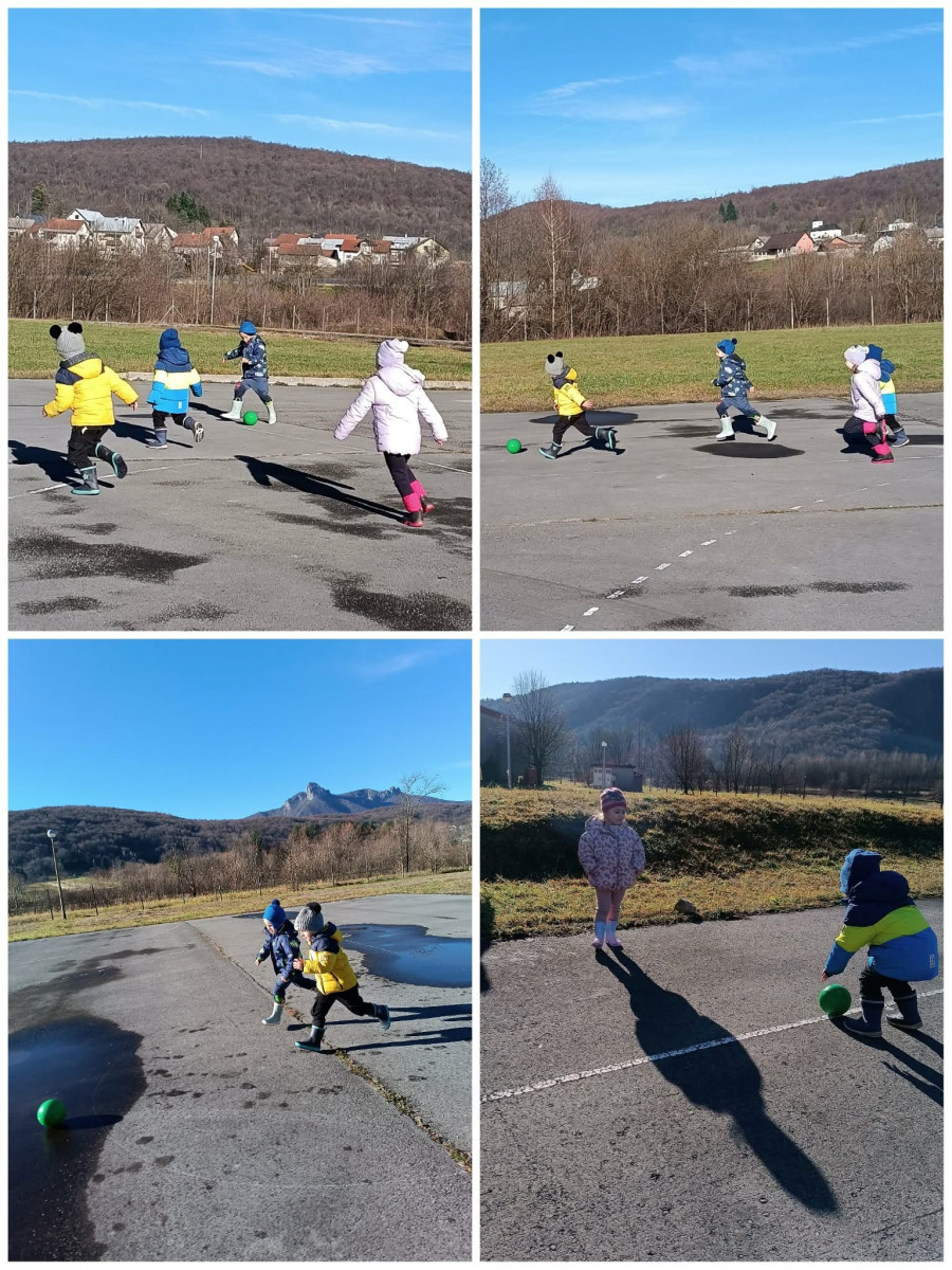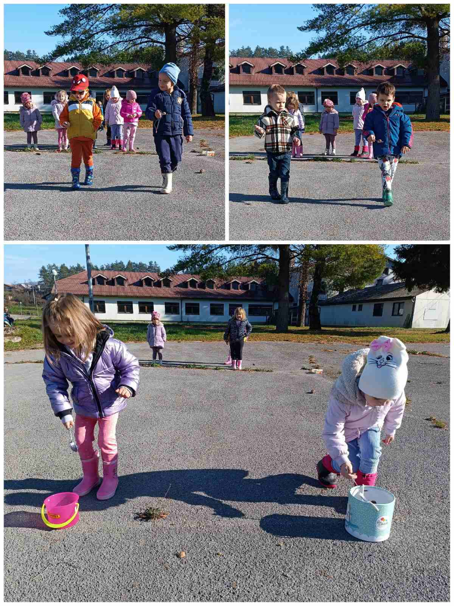 Tijekom boravka na otvorenom zabilježene su dječje spontane igre, inicirane i u potpunosti osmišljene od strane djece. U tim igrama do izražaja je došla njihova međusobna komunikacija, mašta, kreativnost i znatiželja koja ih je dovela do putovanja čamcem, klizanja, izvedbe vjenčanja, izrade roštilja, interpretacija bajki, spašavanja kraljica i kraljeva te traženja životinja. Djeca su se upoznala i s tradicionalnim dječjim igrama na otvorenom, poput „ljepljive babe“, školice, lovice i „crne kraljice“, a posebno veselje izazvalo je završno druženje uz biciklijadu i romobilijadu.