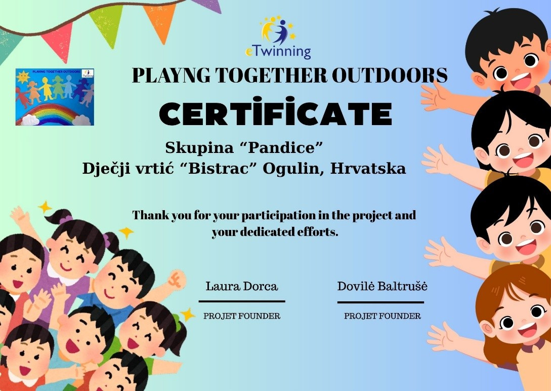Mlađa odgojna skupina „Pandice“, zajedno s odgojiteljicama Ivanom Puškarić i Ivom Bogdanović, sudjelovala je u osmomjesečnom međunarodnom projektu koji je okupio partnere iz devet država: Rumunjske, Litve, Turske, Grčke, Sjeverne Makedonije, Italije, Republike Moldavije, Irske i Hrvatske. Zajednički zadatci partnera projekta, kao i susreti djece i odraslih, odvijali su se na engleskom jeziku putem eTwinning platforme.